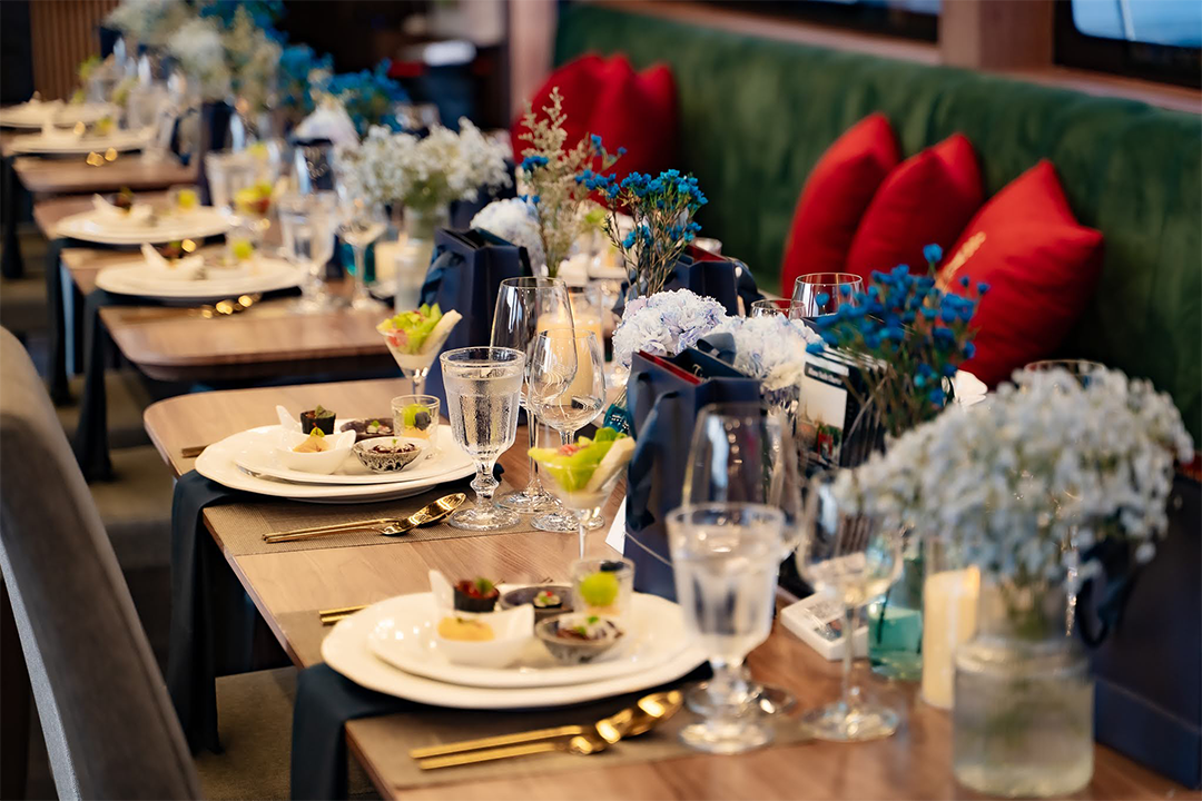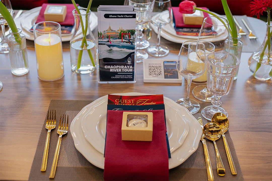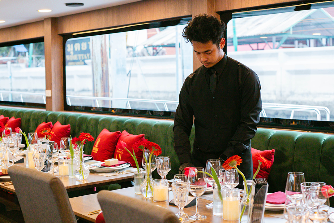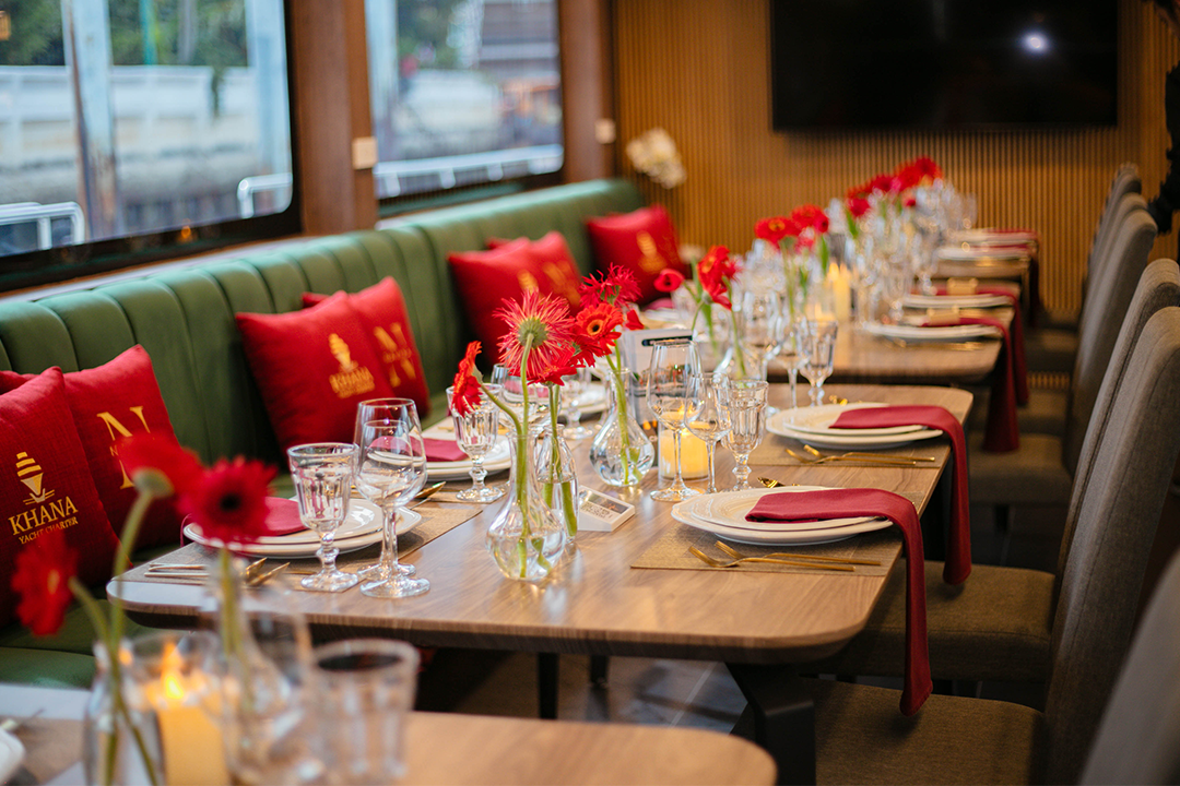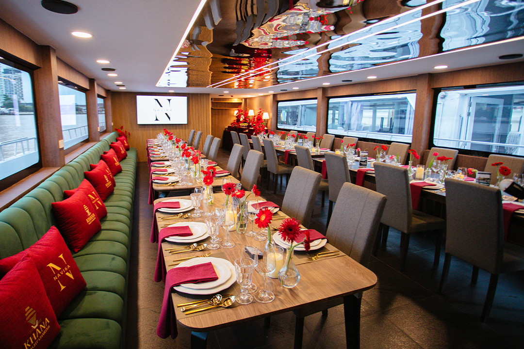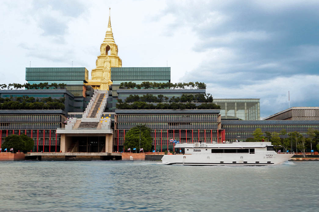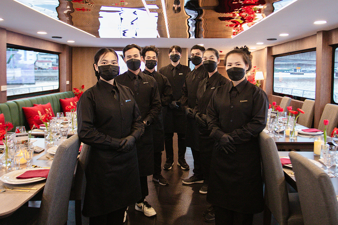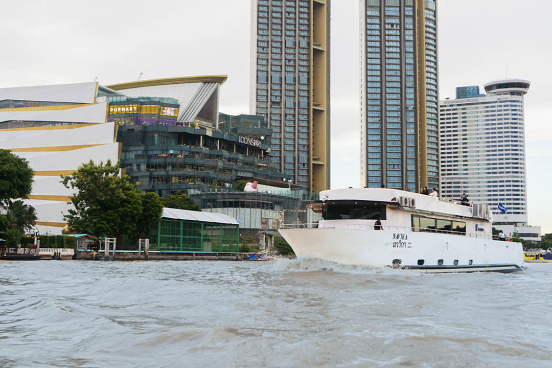 A 90-foot luxury yacht designed for ultimate privacy and comfort, featuring fully equipped spaces including an air-conditioned dining room, full stereo and karaoke system, and a 360-degree panoramic viewing deck. Accommodating up to 50 passengers, it offers a premium atmosphere for every special occasion whether it’s an exciting party, a romantic dinner, or enjoying Bangkok’s vibrant night lights. Immerse yourself in the stunning views of the Chao Phraya River, day or night, in an experience exclusively yours.